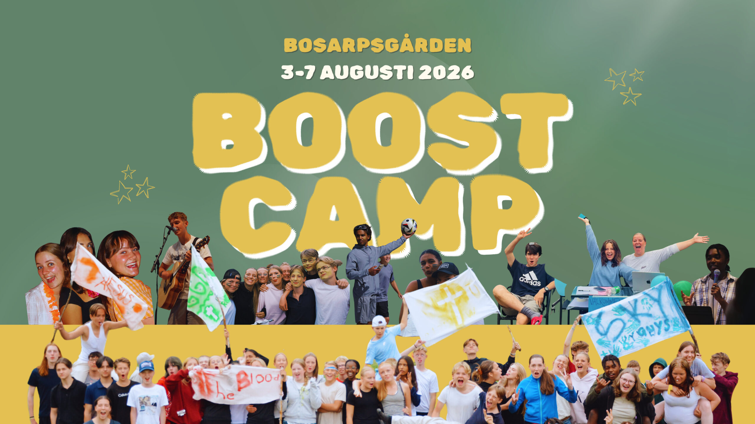 BOOST CAMP är ett sommarläger för tonåringar i högstadiet och uppåt och äger rum på Bosarps läger- och kursgård (bosarp.se) i Skåne. Under dessa dagar samlas totalt närmare 100 underbara deltagare och fantastiska ledare för gött sommarhäng, massor av olika sorters aktiviteter och tävlingar, och inspirerande undervisning i kristen tro. Lägret har begränsat antal platser och det är först till kvarn som gäller! Lägret pågår 3-7 augusti 2026.